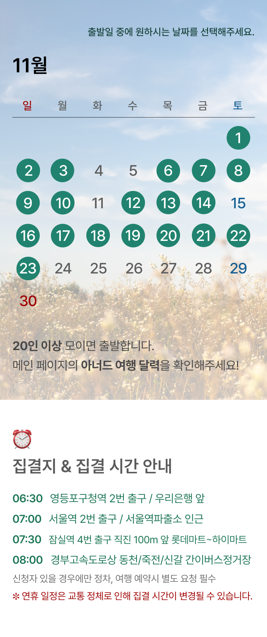 • 여행 비서(인솔자) 연락처는 여행 전날 문자 발송해 드립니다.