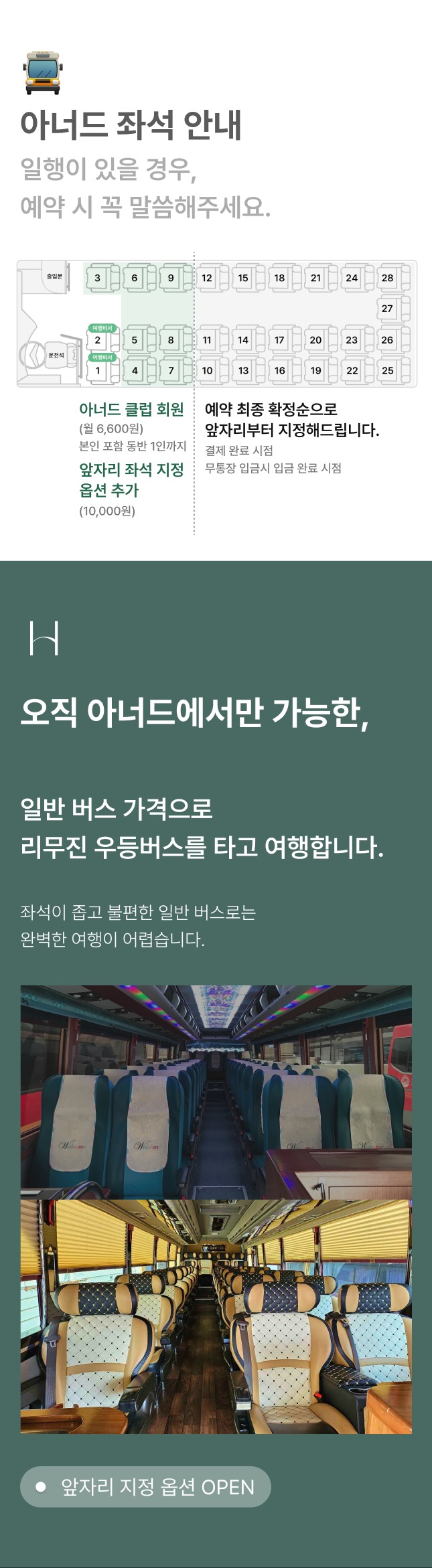 (✽본 상품페이지에 안내된 식사 메뉴는 버스 1대(27명) 한정으로 제공되며, 이후 증차 시에는 새롭게 준비된 동급의 메뉴로 대체 제공됩니다. )