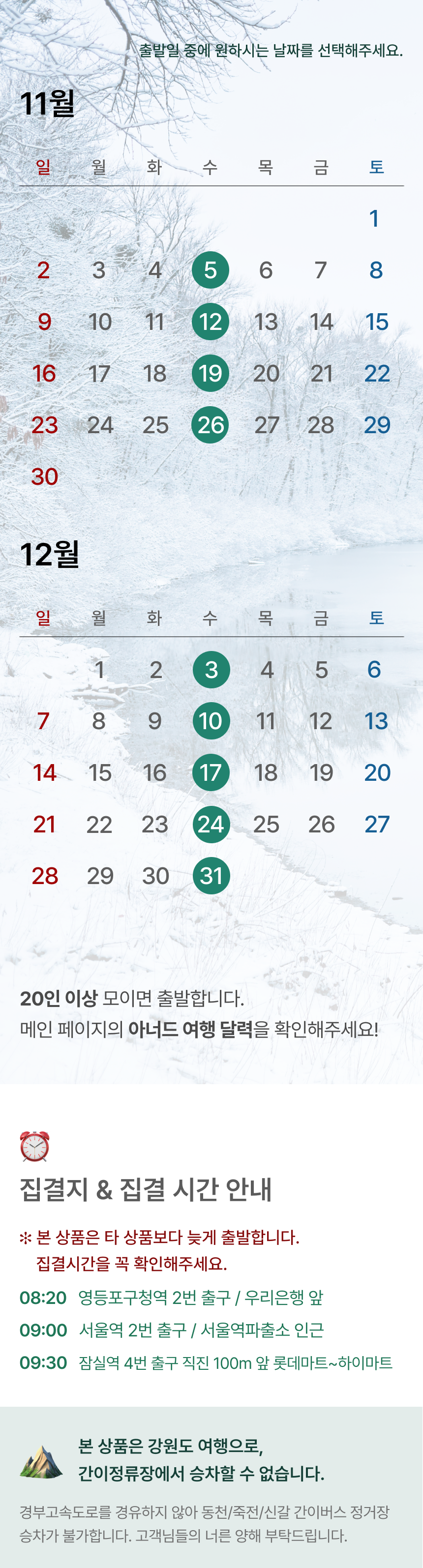 •10인 모객시 출발 확정! 매주 수요일마다 출발합니다.