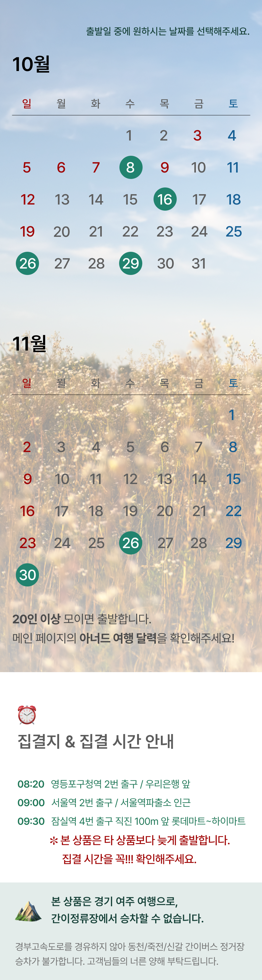 • 여행 비서(인솔자) 연락처는 여행 전날 문자 발송해 드립니다.