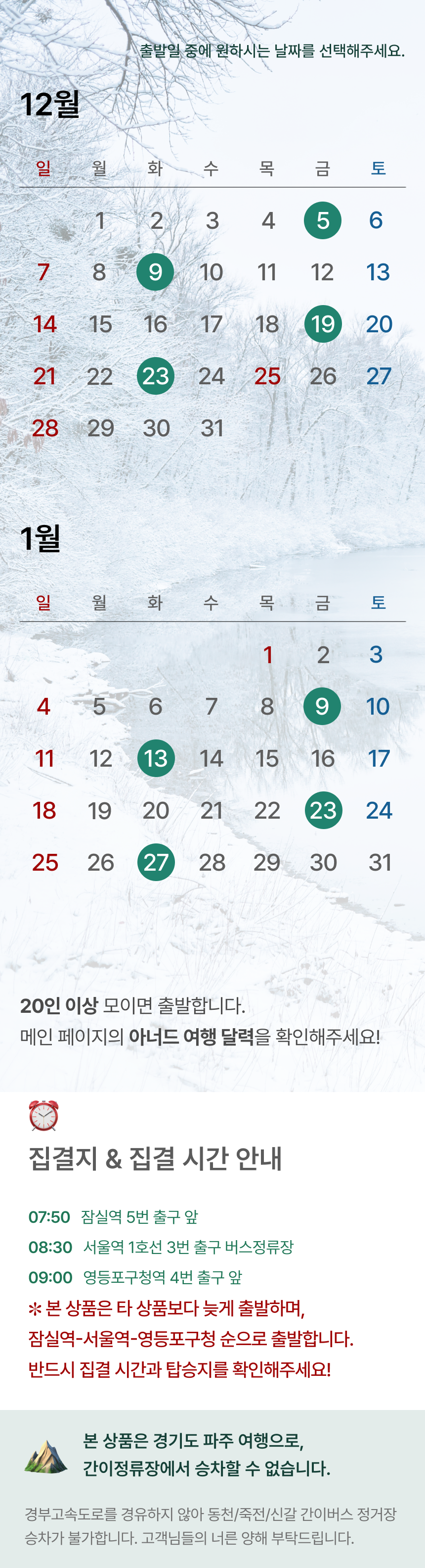 • 출발 하루 전 예약은 반드시 전화로 문의 해주세요.