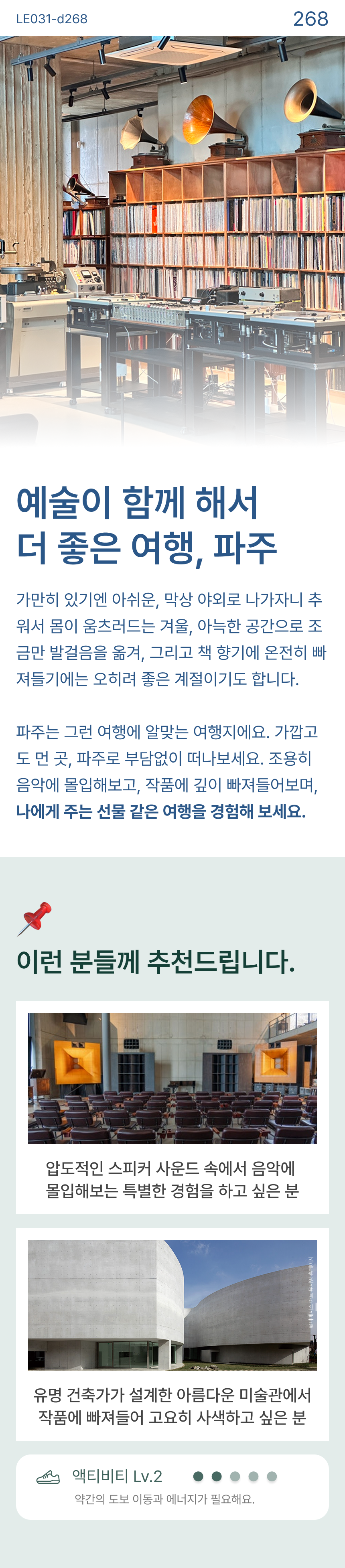 겨울에는 따뜻한 실내에서! 예술의 도시 파주에서 음악/독서/전시를 담아봐요!