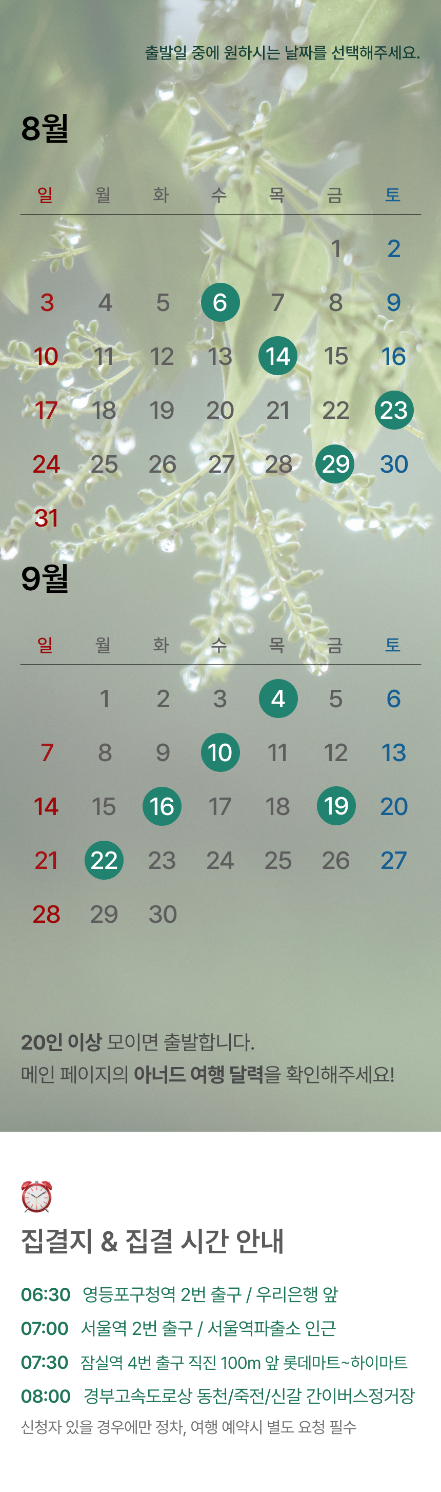• 20인 이상 출발