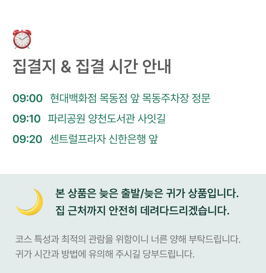 • 출발 하루 전 예약은 반드시 전화로 문의 해주세요.