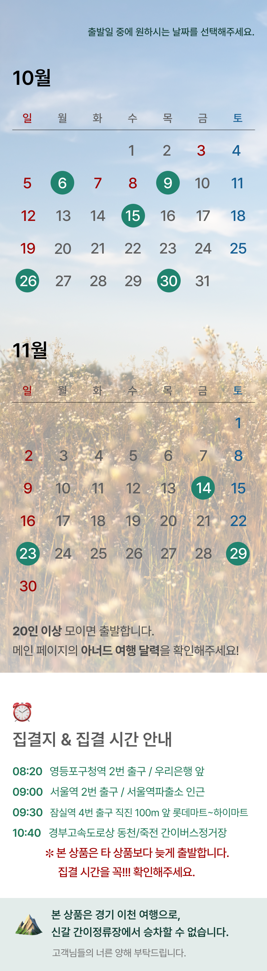 • 여행 비서(인솔자) 연락처는 여행 전날 문자 발송해 드립니다.