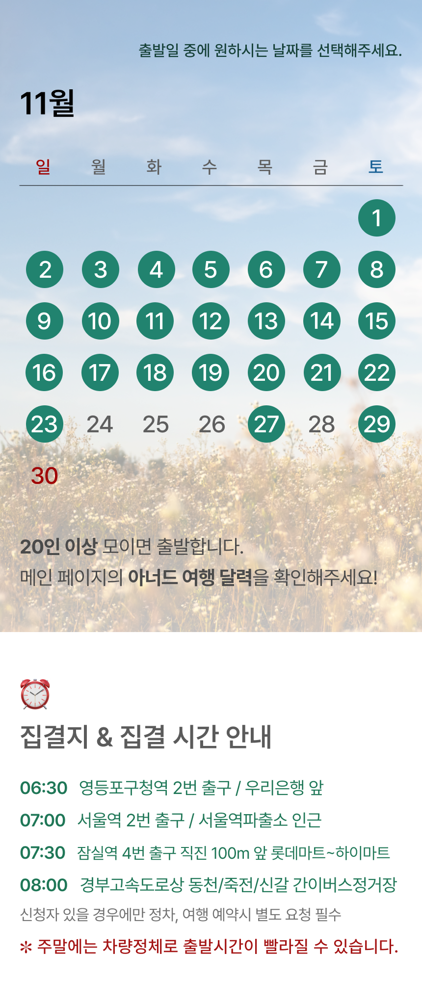 • 여행 비서(인솔자) 연락처는 여행 전날 문자 발송해 드립니다.