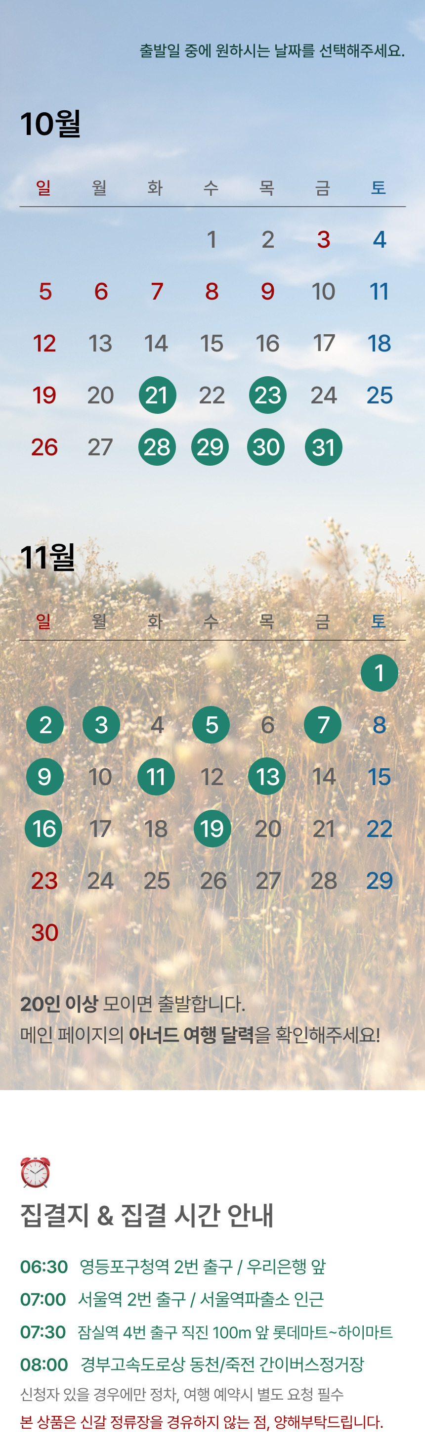 • 여행 비서(인솔자) 연락처는 여행 전날 문자 발송해 드립니다.