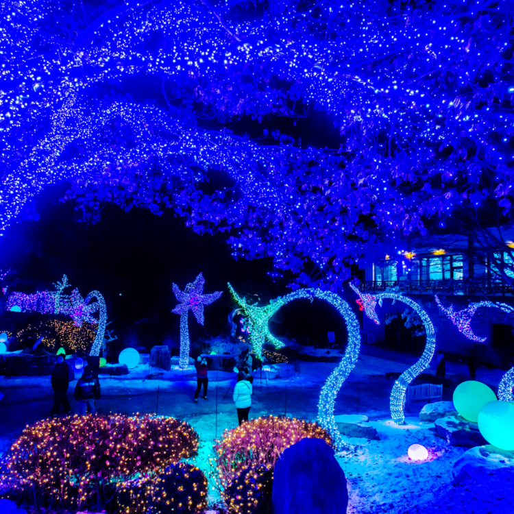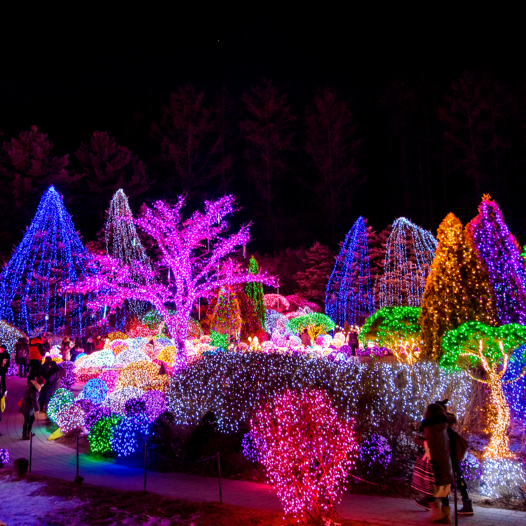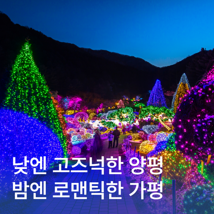 형형색색 조명 아래 연말의 설렘, 가평에서 따뜻하게 마무리하세요.