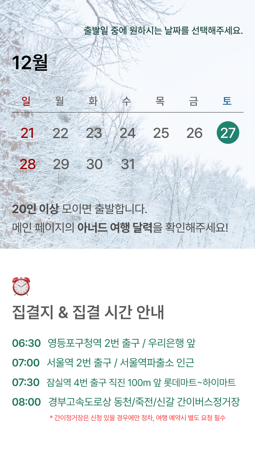 • 출발 하루 전 예약은 반드시 전화로 문의 해주세요.