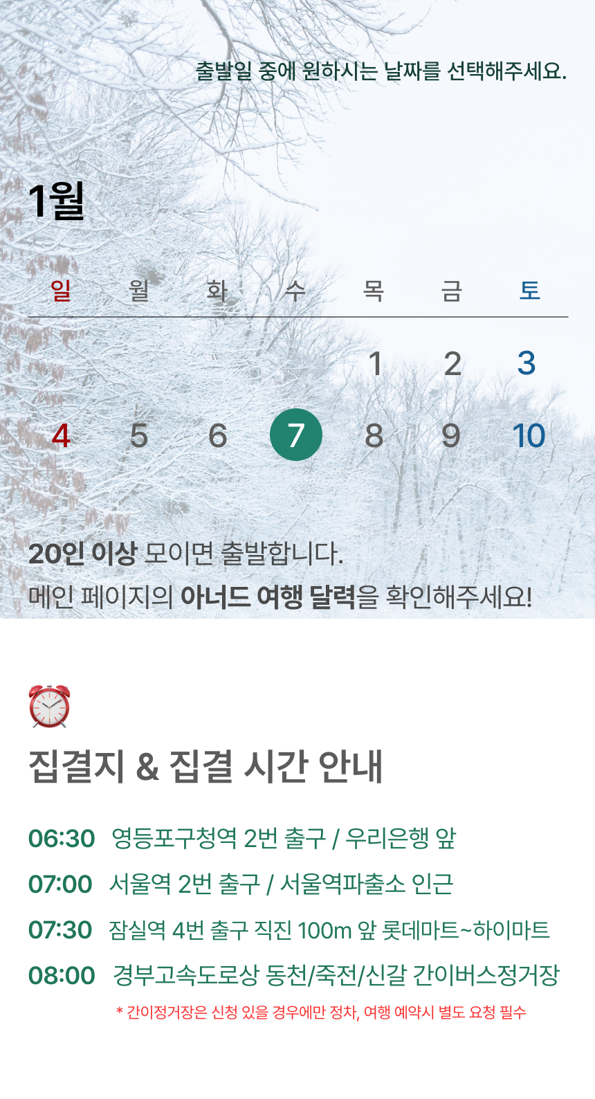 • 20인 이상 출발