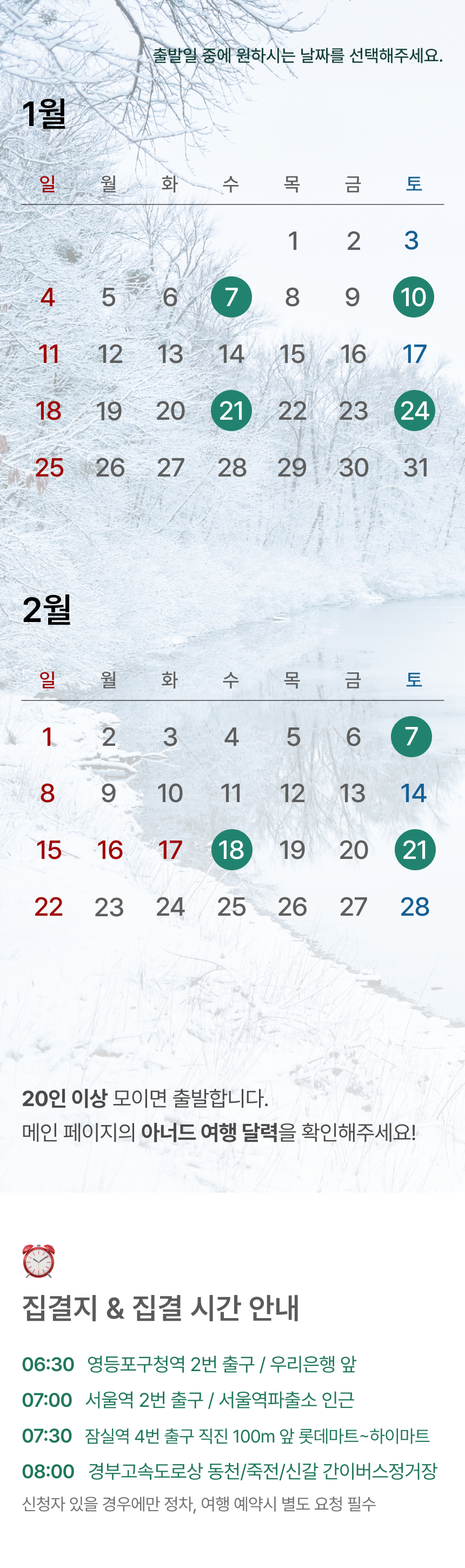 • 20인 이상 출발
