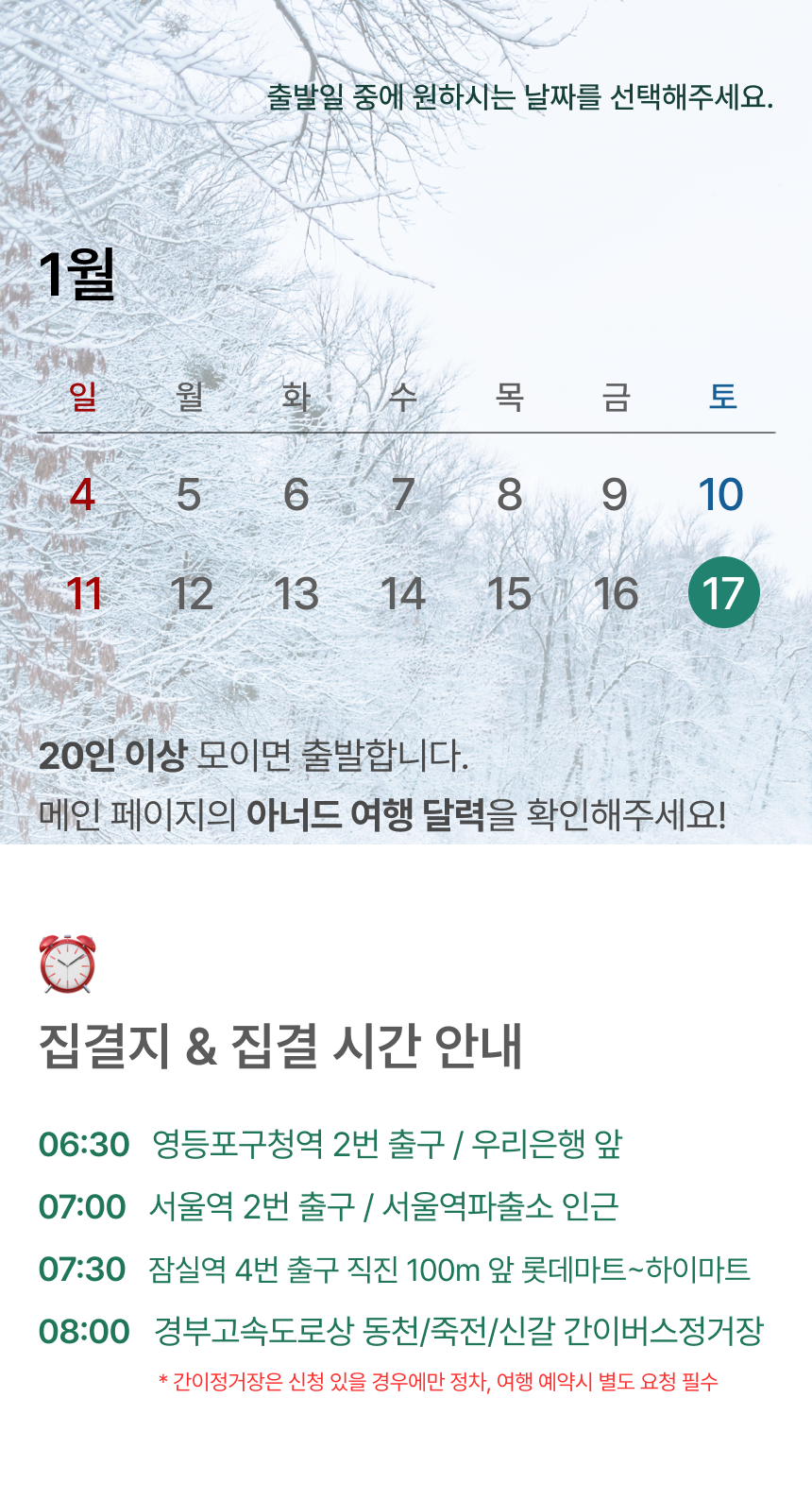 • 20인 이상 출발