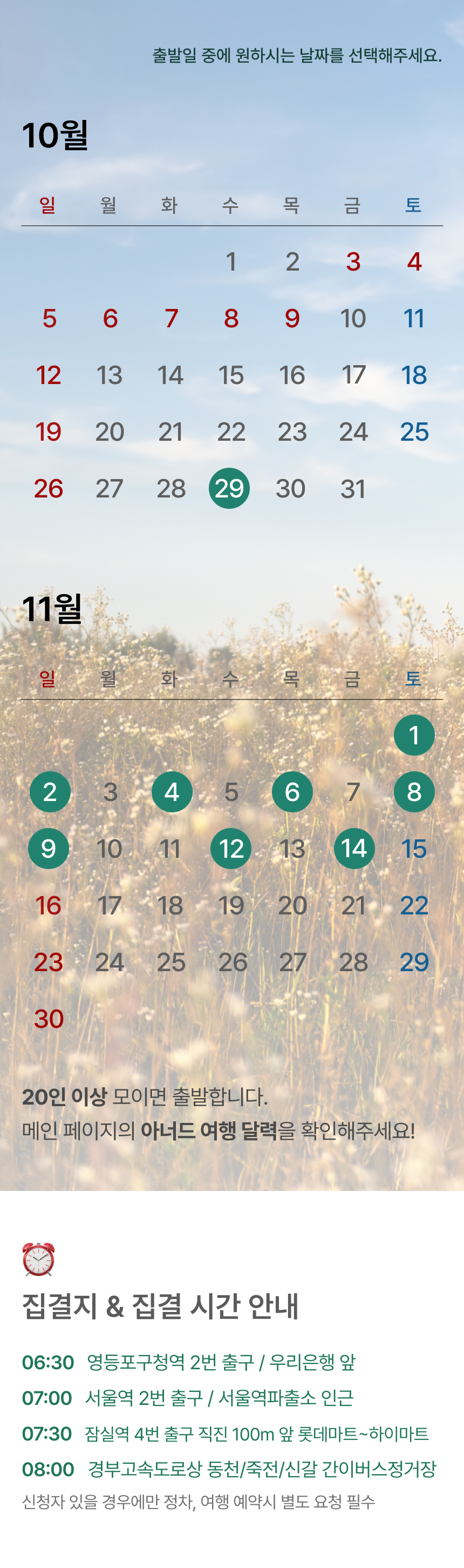 • 여행 비서(인솔자) 연락처는 여행 전날 문자 발송해 드립니다.