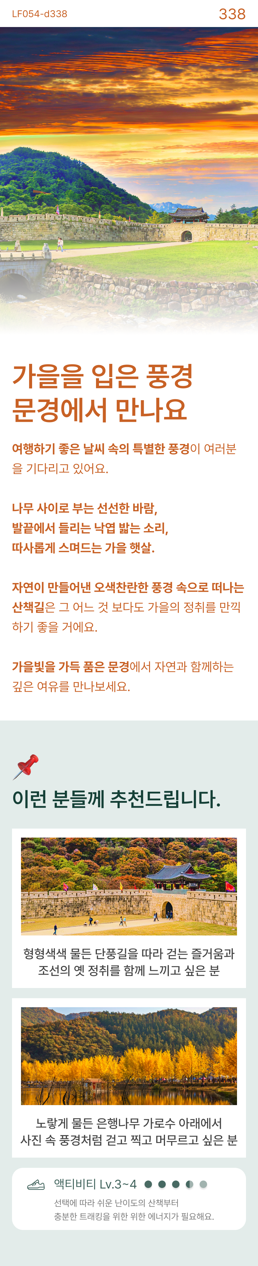 빨갛고 노오란 계절의 색을 입은 문경 & 괴산에서 무르익어가는 가을을 만나보세요.