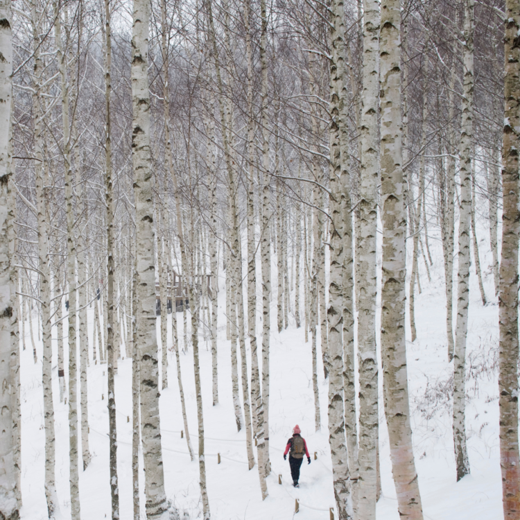 눈 내린 새하얀 자작나무숲에서, 이국적인 정취 가득한 산책