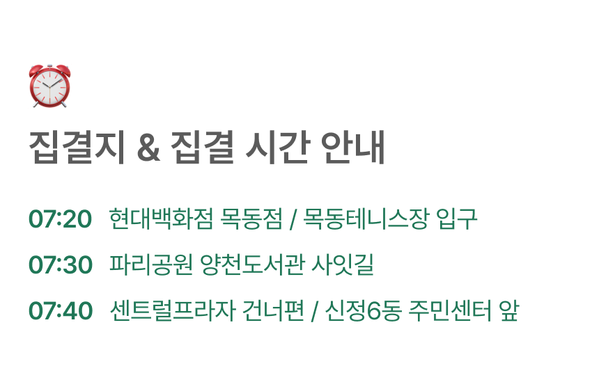 • 출발 하루 전 예약은 반드시 전화로 문의 해주세요.